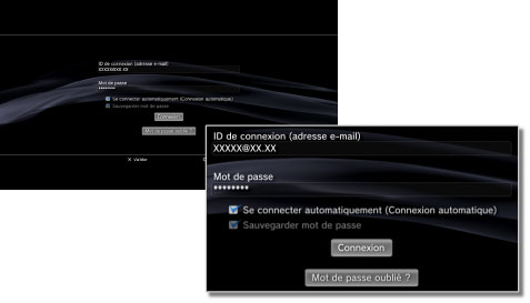 Si vous sauvegardez votre mot de passe, le champ correspondant sera automatiquement renseigné sur l'écran de connexion. Si vous avez aussi choisi la connexion automatique, le système PS3™ se connectera automatiquement de PSNSM dès sa mise sous tension.