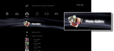 Photo Gallery est une application qui améliore votre expérience de visionnage des photos enregistrées sur le système PS3™. Vous pouvez regrouper des photos de différentes manières, notamment par date et heure, par événement ou selon le nombre de personnes sur les photos. Il est également possible de créer une liste de lecture des photos sélectionnées et de choisir un cadre photo pour la liste de lecture. Pour plus d'informations sur l'utilisation de Photo Gallery, sélectionnez ici.