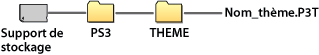Lorsque vous téléchargez un thème à partir d'un site Web ou que vous créez un thème à l'aide d'un PC, créez un nouveau dossier nommé [PS3] - [THEME] sur le support de stockage, puis enregistrez le thème dans ce dossier. Les fichiers de thème doivent être enregistrés avec l'extension [.P3T].
