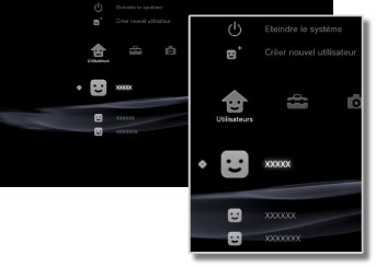 Pour créer des utilisateurs ou mettre le système PS3™ hors tension. Si vous créez plusieurs utilisateurs, les données telles que les données enregistrées pour un logiciel au format PlayStation®3, les messages envoyés et reçus sous