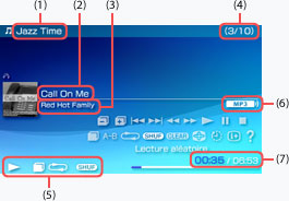 Affiche des informations telles que le nom de l'album, le numéro de la piste et le nombre total de pistes.