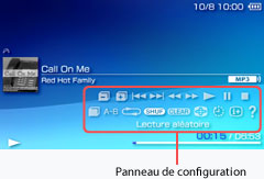 enfoncée, la musique est lue en mode Retour rapide / Avance rapide aussi longtemps que la touche