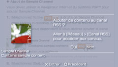 Démarrez le navigateur Internet. Si vous souhaitez ajouter des canaux au support Memory Stick™, vous devez d'abord insérer ce dernier dans le système PSP™. |