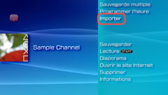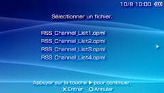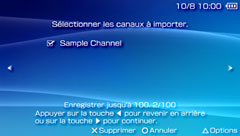 Sélectionnez un canal, appuyez sur la touche Si les fichiers OPML que vous souhaitez importer sont enregistrés sur le support Memory Stick™, vous devez d'abord insérer ce dernier dans le système PSP™.