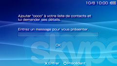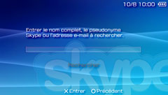 - Si vous vous connectez à l'aide d'un compte (Pseudonyme Skype) que vous utilisez déjà sur un PC, la liste de contacts utilisée par ce compte est automatiquement téléchargée et affichée sur le système PSP™.