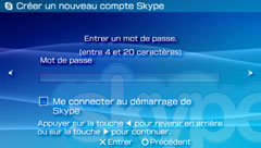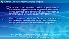 Les comptes d'utilisateur sont ouverts directement auprès de Skype et ne sont aucunement gérés par Sony Computer Entertainment.