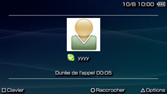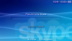 Skype peut être utilisé pour des téléconférences à l'aide de trois appareils ou davantage. Si vous utilisez Skype pour le système PSP™, vous pouvez participer à une téléconférence lancée à partir d'un autre appareil, mais vous ne pouvez pas inviter de tiers à participer à une téléconférence. Pendant une téléconférence, seules les informations relatives à la personne qui a lancé la téléconférence s'affichent à l'écran, comme s'il s'agissait d'un appel bilatéral.