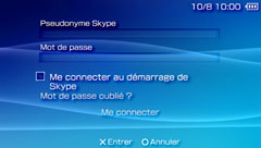 - Si vous activez la case à cocher [Me connecter au démarrage de Skype], vous pourrez vous connecter sans saisir votre pseudonyme Skype et votre mot de passe lors de la prochaine utilisation de Skype. Remarquez que si vous enregistrez votre mot de passe, d'autres personnes peuvent se connecter à votre compte et émettre des appels.