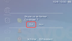 Appuyez sur la touche ou sur la touche dans l'écran du menu Skype.