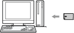 Retirez le support Memory Stick™ du système PSP™ et copiez le fichier à partir du PC à l'aide d'un lecteur/graveur de Memory Stick™ USB disponible dans le commerce.