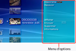 Sélectionnez une icône, puis appuyez sur la touche pour afficher le menu d'options. Les options du menu varient selon l'icône sélectionnée.