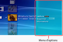 Sélectionnez une icône, puis appuyez sur la touche pour afficher le menu d'options. Les options du menu varient selon l'icône sélectionnée.