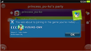 If you are invited to join a game by a member of a party, a message appears on the screen. If you have the same game, select [OK] to play the game with that member.