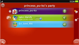 (Chat & Events) to chat using text chat with members of the party. When members join or leave, or when a game is started, these events appear on this screen. When a chat message or other information is added, you are notified with