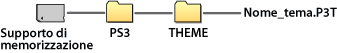 Quando un tema viene creato utilizzando un PC o viene scaricato da un sito Web, creare una cartella denominata [PS3] - [THEME] sul supporto di memorizzazione e salvare il tema al suo interno. I file di tema devono essere salvati con estensione [.P3T].