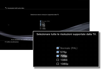 Le opzioni di modalità video variano in base alla regione in cui il sistema PS3™ è stato acquistato. In Nord America, Asia e altre regioni NTSC, la modalità video 480i viene visualizzata come [Normale (NTSC)]. In Europa e altre regioni PAL, la modalità video 576i viene visualizzata come [Normale (PAL)]. Per ulteriori informazioni, consultare le istruzioni per l'uso in dotazione con il prodotto.