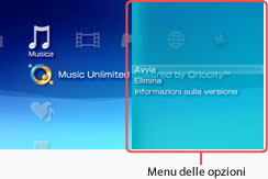 Per visualizzare il menu delle opzioni, selezionare l'icona Music Unlimited powered by Qriocity™ e premere il tasto