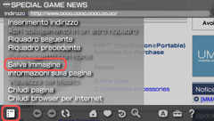 Posizionare il puntatore sull'immagine da salvare. Selezionare [Salva immagine] sotto [File] nella barra dei menu.