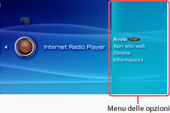 , viene visualizzato il menu delle opzioni. È quindi possibile eliminare o visualizzare le informazioni sul lettore per radio Internet.