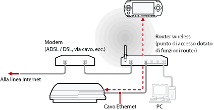 - Anche un modem può essere dotato di funzioni di router. Se si collega un sistema PS3™ a un modem, usare un modem dotato di funzionalità di router.