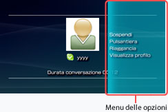 durante la conversazione, viene visualizzato il menu delle opzioni. Da questo menu è possibile mettere la chiamata in attesa o visualizzare un profilo.