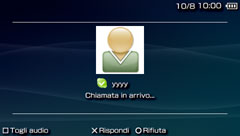 Durante la conversazione, non è possibile ricevere sul sistema PSP™ chiamate da un altro utente Skype o da un telefono tradizionale.