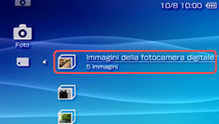 Quando si utilizza una fotocamera digitale fissa compatibile con la scheda Memory Stick™, le immagini possono essere visualizzate inserendo la Memory Stick™ nel sistema PSP™. Le immagini saranno visualizzate nella cartella Immagini della fotocamera digitale (DCIM).