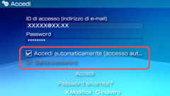Se si salva la password, questa verrà già indicata nella schermata di registrazione. Se è impostato l'accesso automatico, il sistema effettuerà automaticamente l'accesso a PlayStation®Network alla selezione di