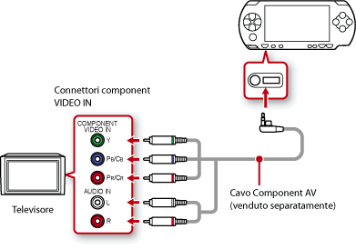 È possibile visualizzare il video di sistema PSP™ su un televisore usando un cavo di uscita video (venduto separatamente). Scegliere un cavo compatibile con il televisore utilizzato.
