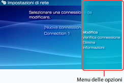 mentre è selezionata una connessione di rete salvata, sarà visualizzato il menu delle opzioni. È possibile modificare le informazioni sulle impostazioni e effettuare una prova di connessione.