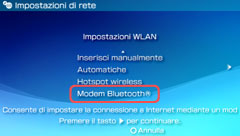 È possibile impostare il dispositivo Bluetooth® come punto di accesso da usare per connettere il sistema PSP™ a Internet. Prima di eseguire questa impostazione, è necessario registrare (accoppiare) il dispositivo con il sistema. Per ulteriori informazioni sulla registrazione del dispositivo, consultare la sezione