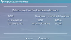 In base al modello di sistema PSP™ in uso, potrebbe essere disponibile l'opzione [Automatico]. Selezionare [Automatico] quando si utilizza un punto di accesso che supporta l'impostazione automatica. Seguendo le istruzioni sullo schermo, le impostazioni necessarie vengono completate automaticamente. Per informazioni sui punti di accesso che supportano l'impostazione automatica, contattare il rivenditore di zona.