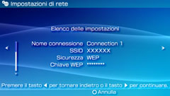 È possibile creare impostazioni di rete da usare per collegarsi a Internet attraverso un punto di accesso e salvarle nel sistema PSP™. È possibile salvare fino a 10 collegamenti.