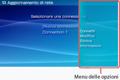 mentre è selezionata una connessione, sarà visualizzato il menu delle opzioni. Nel menu, è possibile modificare le impostazioni di connessione o cancellare la connessione.