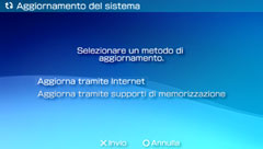 Utilizzare i dati di aggiornamento salvati sul supporto di memorizzazione (es. memoria di sistema, UMD™, Memory Stick™ o altri supporti).