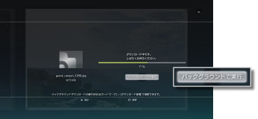 バックグラウンドダウンロードとは、ファイルサイズの大きいデータや複数のデータをダウンロードするときに、ダウンロードしながら他の操作ができる機能です。ダウンロード中に表示される画面で、[バックグラウンドで実行]が表示されたときだけ操作できます。