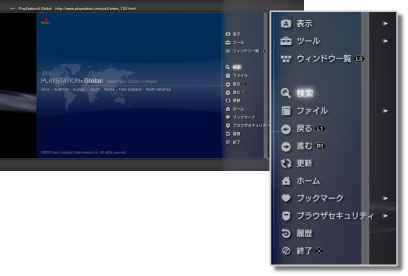 ボタンで表示/非表示を切りかえられます。ブラウズモードとウィンドウモードでは、メニューの項目が異なります。
