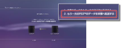 [2. もう一方のPS3™のデータを本機へ転送する]を選ぶ。