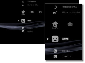 PS3™を使うユーザーを作成したり、PS3™の電源を切ったりできます。複数のユーザーを作成すると、PlayStation®3規格ソフトウェアのセーブデータ、