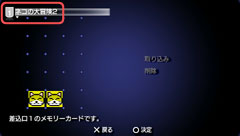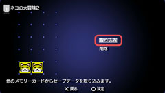 削除したいセーブデータが保存されている仮想メモリーカードを選ぶ。 |