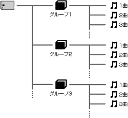 曲をアルバム別やアーティスト別などにまとめた状態のことをいいます。PSP™は、グループ機能に対応しており、あらかじめパソコンなどで作っておいたグループがそのまま使えます。グループモードをオンにすると、グループ単位でさまざまな再生ができます。
