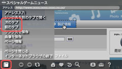 ボタンを押すとタブが表示されます。現在表示しているページのタブは、他のタブより長くなります。