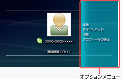 ボタンを押すと、オプションメニューが表示されます。通話を保留にしたり、プロフィールを表示したりできます。
