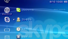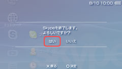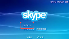 Skypeのメニュー画面で方向キー または ボタンを押す。