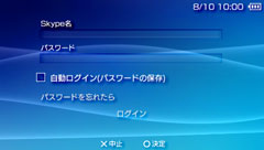 - [自動ログイン(パスワードの保存)]にチェックを付けると、次回から[Skype名]と[パスワード]を入力せずにログインできます。パスワードを保存すると、第三者によるログインが可能になるため、ご注意ください。