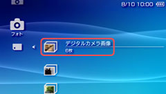 メモリースティック™に対応したデジタルスチルカメラをお使いのときは、カメラのメモリースティック™をPSP™にセットすると画像を表示できます。撮影した画像は[デジタルカメラ画像]フォルダーに表示されます。