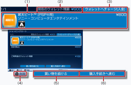 - 手順3で、有料の商品の場合に[今すぐ購入]を選ぶと、ショッピングカートを経由せずに購入できる画面(手順6)へ進めます。購入手続きをするときに、PlayStation®Networkのアカウントにクレジットカード情報を登録していて、なおかつウォレットの残額が不足している場合は、自動的にチャージ(入金)されますので注意してください。