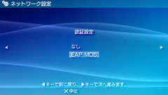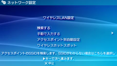対応地域のPSP™だけで表示される項目です。自動設定に対応しているアクセスポイントをお使いのときに選びます。画面の指示に従って操作すると、必要な設定が自動的に完了します。対応アクセスポイントについては、アクセスポイントの販売元にお問い合わせください。 |