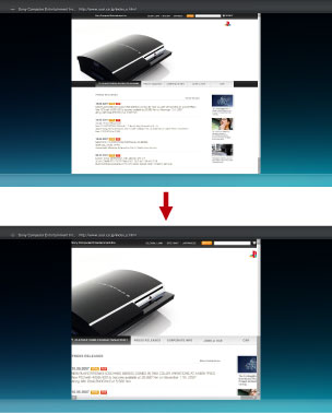 웹 페이지의 표시 해상도를 변경합니다. PS3™의 영상 출력 해상도에 맞게 웹 페이지를 보기 좋은 크기로 조정할 수 있습니다.