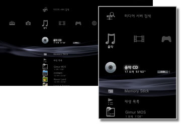 (본체 스토리지에 저장된 파일) | PS3™의 본체 스토리지에 저장된 음악 파일을 재생할 수 있습니다. 이미지 데이터가 있는 경우 섬네일이 표시됩니다. |